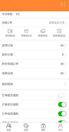 手机端随时随地接收消息通知、查看店铺动态、操作处理订单等